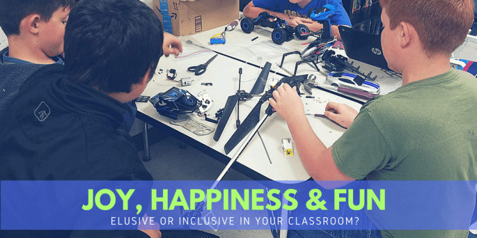 I have a very bright, quick-witted, downright funny 11 year old son, Ryan, who absolutely hates school, most of the time. From kindergarten through second grade, he would wake up angrily every morning for school, complain loudly about it being a complete waste of his time, and trudge through his morning routine. I'm an educational … Continue reading Joy, Happiness, & Fun: Elusive or Inclusive in Your Classroom?