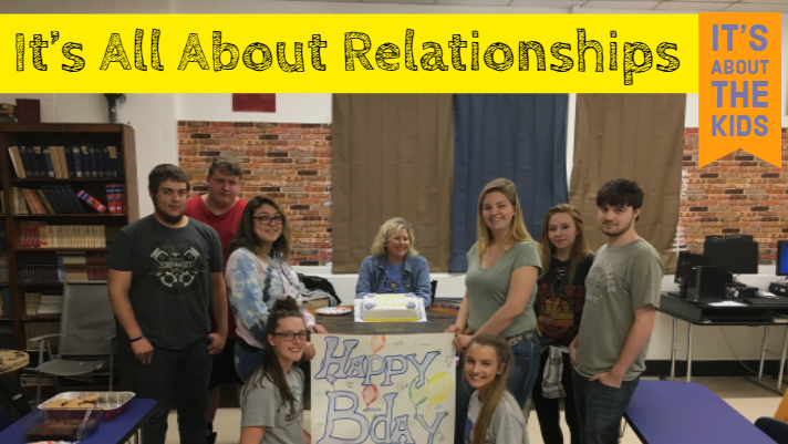 They threw me a surprise party with a cake they ordered, chocolate cupcakes with peanut butter icing, taquitos one student, Maddie, heated up in the Family and Consumer Science (FACS) room across the hall from my room, and a pan of brownies. All of the treats were wonderful, but the best one of all was the relationship I had with these students. We hear the phrase that “It’s All About Relationships” all of the time in education, and right or wrong, I had done it. Forged relationships with this class. These students. Though I frequently feel like I have failed when this period ends, when I don’t see the students dig into the content eagerly, and I push them to think and create but meet resistance. I see now that I haven’t failed. It’s all about relationships.
