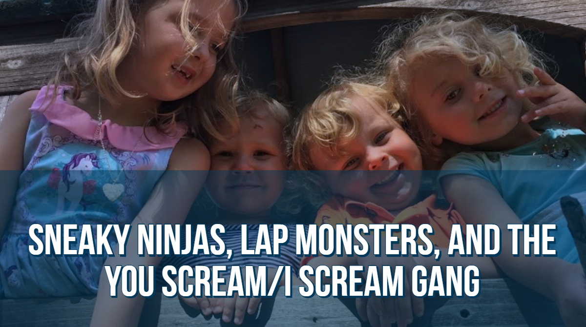 I don’t cuddle or have high school students sit in my lap while teaching (er..ever), so I was momentarily wondering what to do. Then Lap Monster #1 said we could play the Lap Monster game. The what? Sneaky Ninja #2 giggled and said, “YES! That’s when we all pile onto Auntie Mommy’s lap and don’t let her go to the bathroom!” Wait, what? Sneaky Ninja #1 jumped up and down chanting “Lap Monster! Lap Monster! Lap Monster!” Ummm. Help? So as you can see, this veteran teacher who presents nationally, was outnumbered and overrun by preschoolers. Two of my older kids sat calmly at the table and watched. One of the older kids, age nine, had crawled under the table. I finally got the two year-olds to play behind me (towards the door) with some toys, which they had scattered more thoroughly than a tornado, and the Cave Dweller to come out from under the table (on her own-I gave her space), and we had just started the lesson (30 minutes into class time), when Sneaky Ninja #1 let out a high pitched squeal scream. I opened my mouth to remind him to use inside voices, when Sneaky Ninja #2 followed suit and screamed. Then Lap Monster #1 screamed. I panicked but got them to stop when my partner arrived. She looked at the toddlers gone wild, the mess everywhere, and then at me. “Would nobody help you or did you even ask?” Yeah. I didn’t ask.