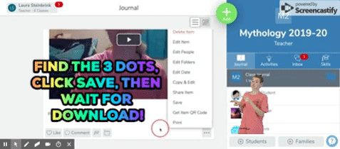 Enter Seesaw. Back to the original video that she recorded mistakenly on Seesaw, we realized that it downloaded from Seesaw as an .mp4 video file format. That format worked beautifully with our Google Drive to Google Slides integration. And just like that, we had a solution. Seesaw’s easy to use tools are available for student creation with or without an active assignment. When my student created her video on the Chromebook using Seesaw’s video recording tool, it was saved in the activity stream.